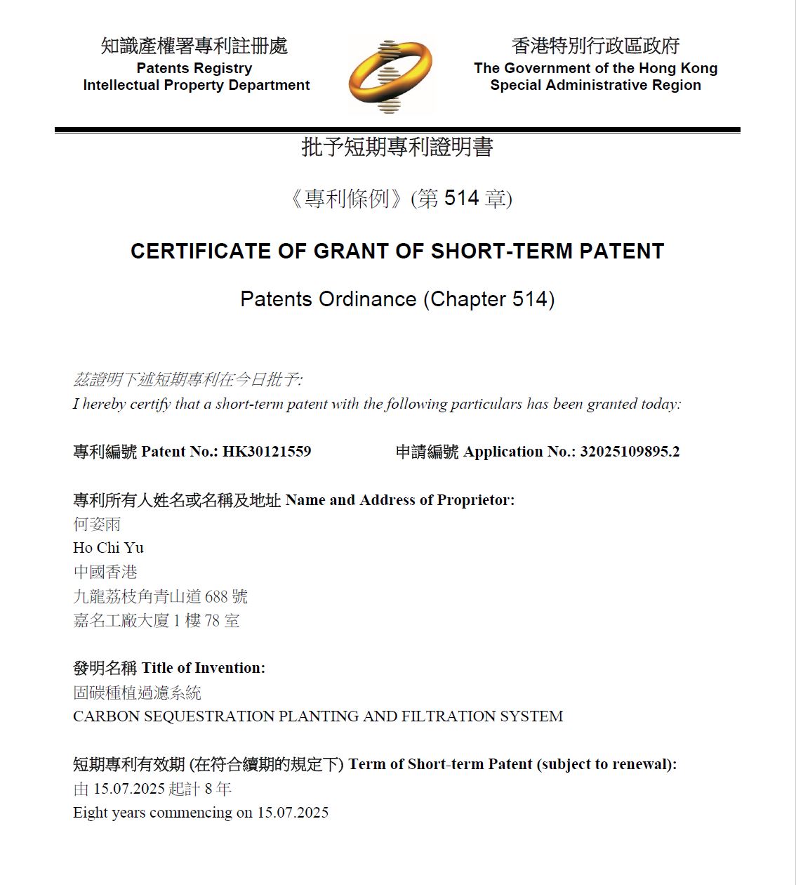 Hong Kong Renewable Resources Group Limited 【Carbon fixation filtration system】